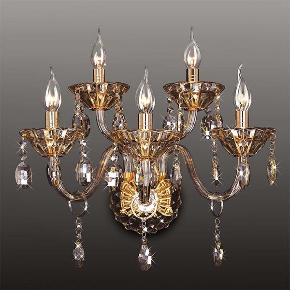Хрустальное бра 256/5 Strotskis станет ярким световым акцентом в классических интерьерах и создаст качественное освещение на площади 24 м². Эффектные чаши подсвечников украшены хрустальными подвесками, которые искрятся в лучах света, наполняя помещение выразительным блеском.