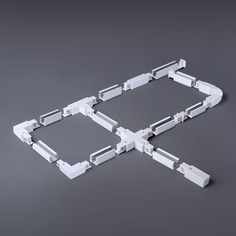 | Тип изделиятрековый светильник однофазный | Материалпластик | Материал изделияметалл |