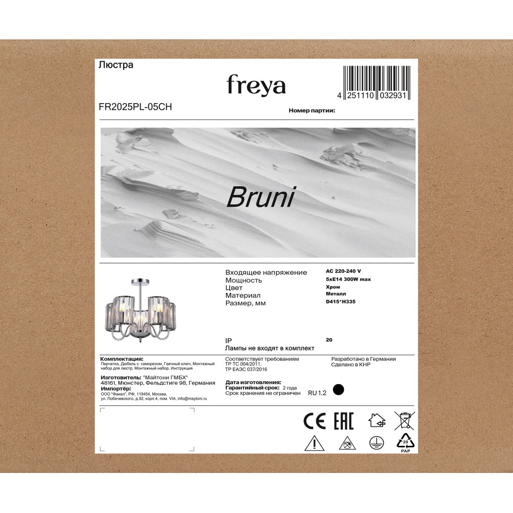 Технические характеристики Люстра Freya FR2025PL-05CH