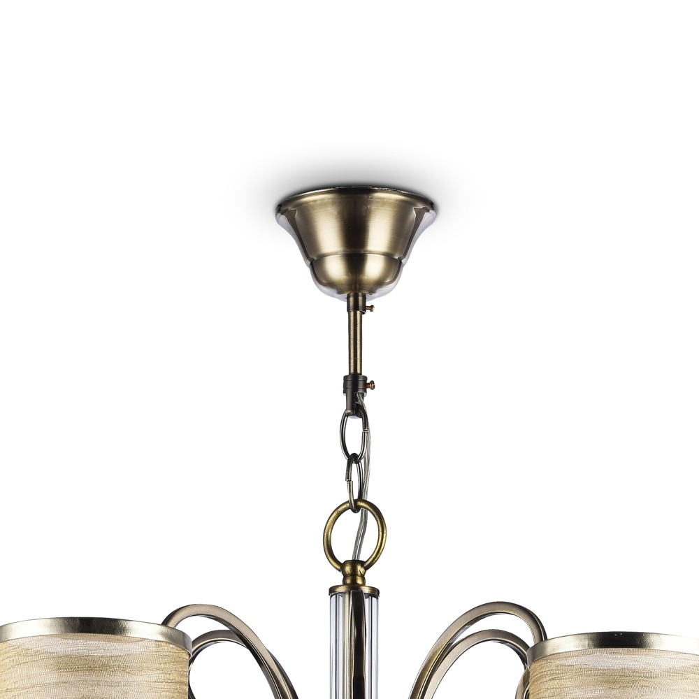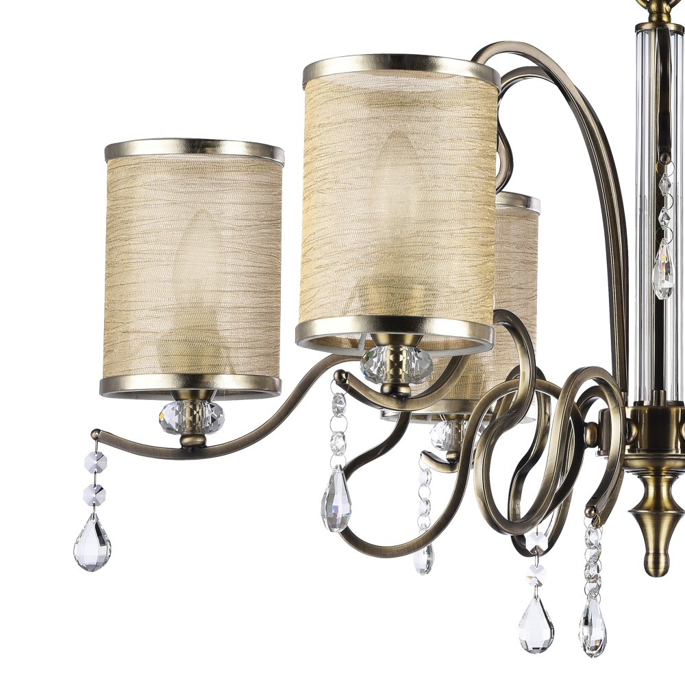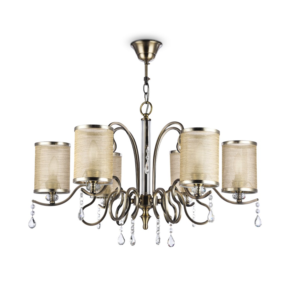 | Полное наименование | Серия превосходно впишется как в интерьер загородного дома, так и в интерьер квартиры или общественных объектов таких как, например, офис банка. Полупрозрачные абажуры из органзы отлично пропускают и рассеивают свет от ламп. Люстры и бра украшены подвесками. |