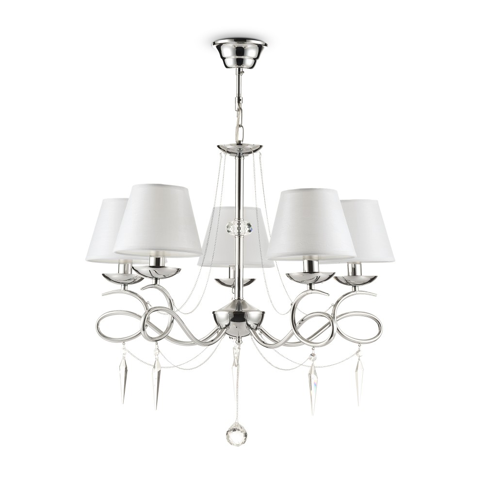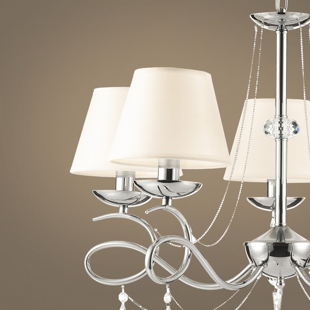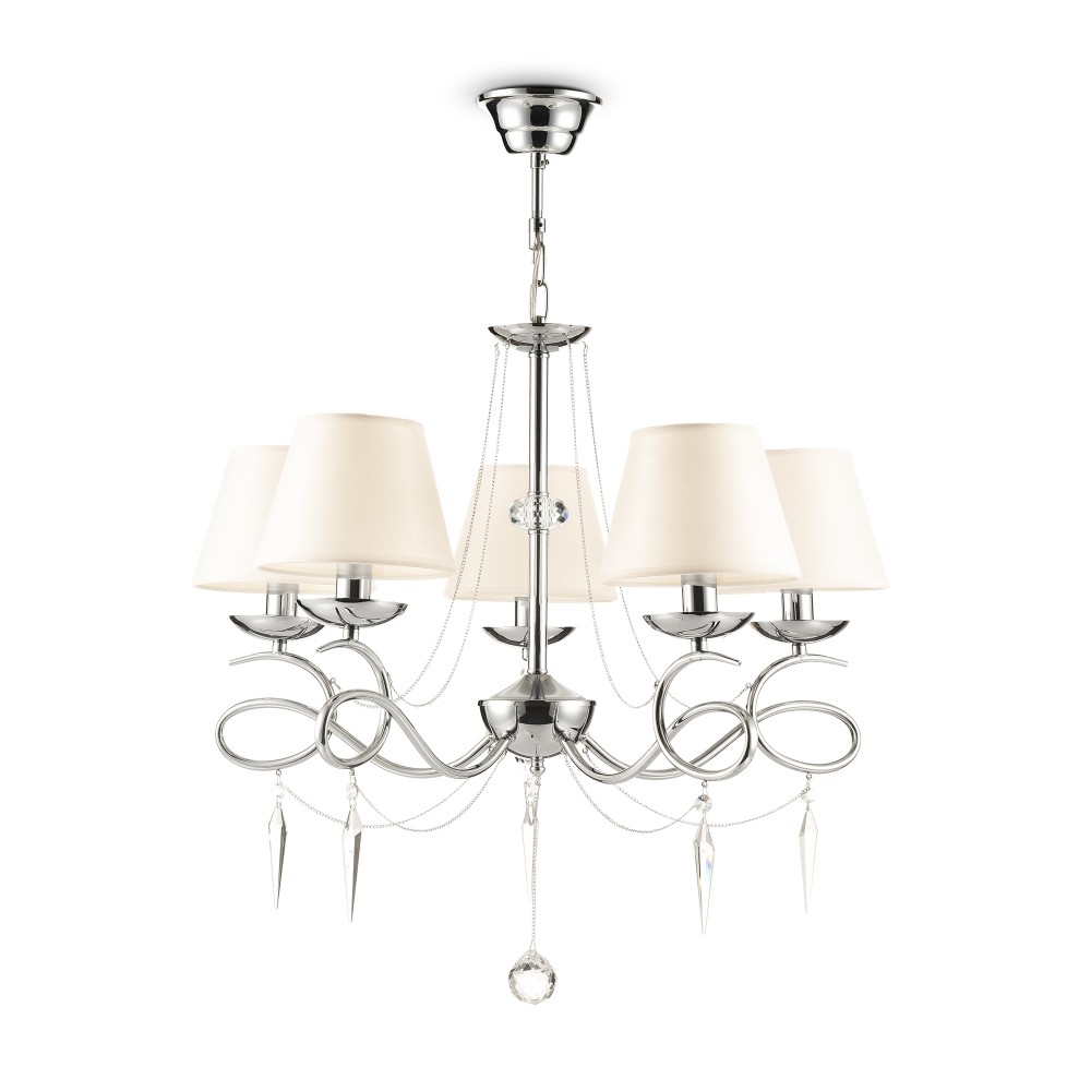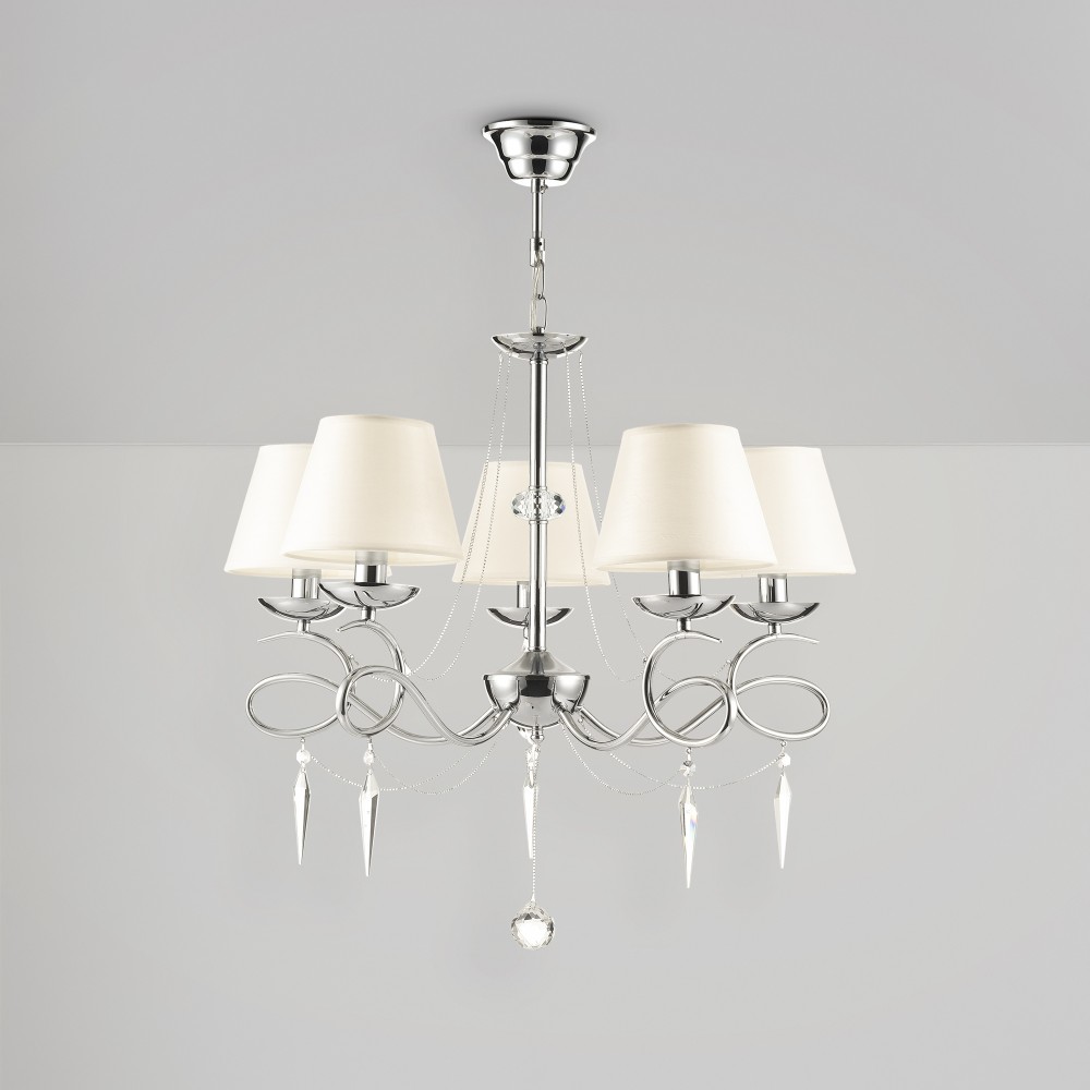 | Полное наименование | Светлые абажуры из ткани сочетаются с металлической арматурой в цвете хром и декоративными подвесками из стекла. Светильники Haley подходят для интерьеров в классическом стиле, например, для гостиных и спален. |