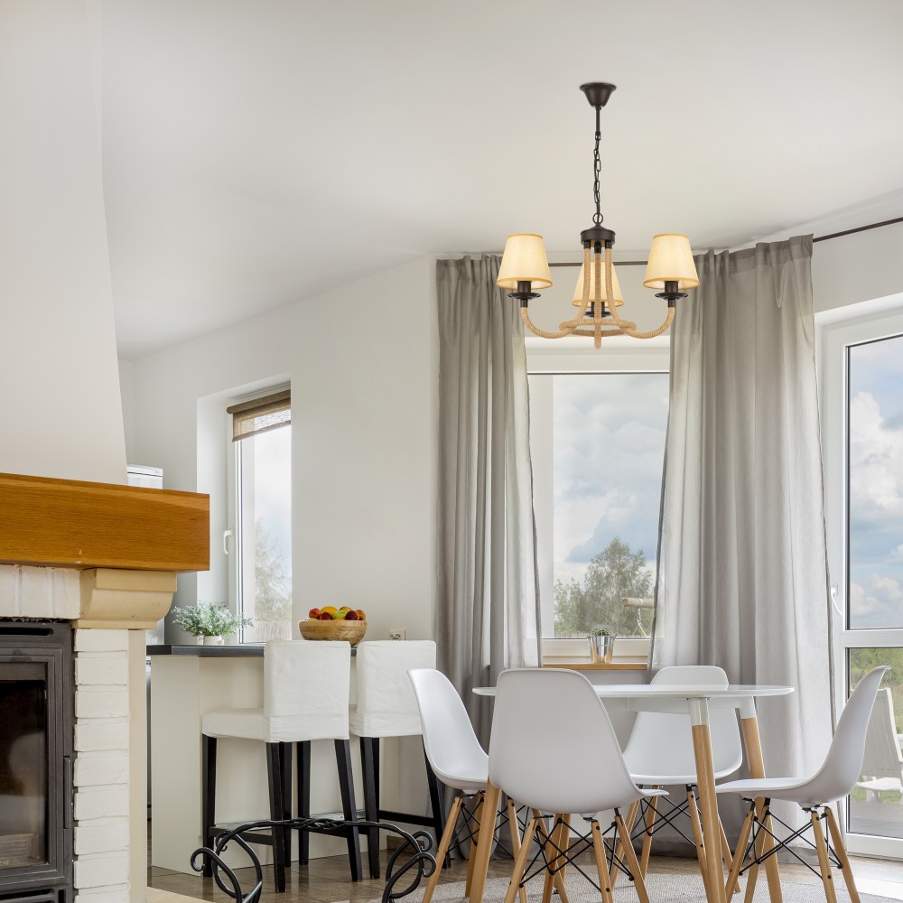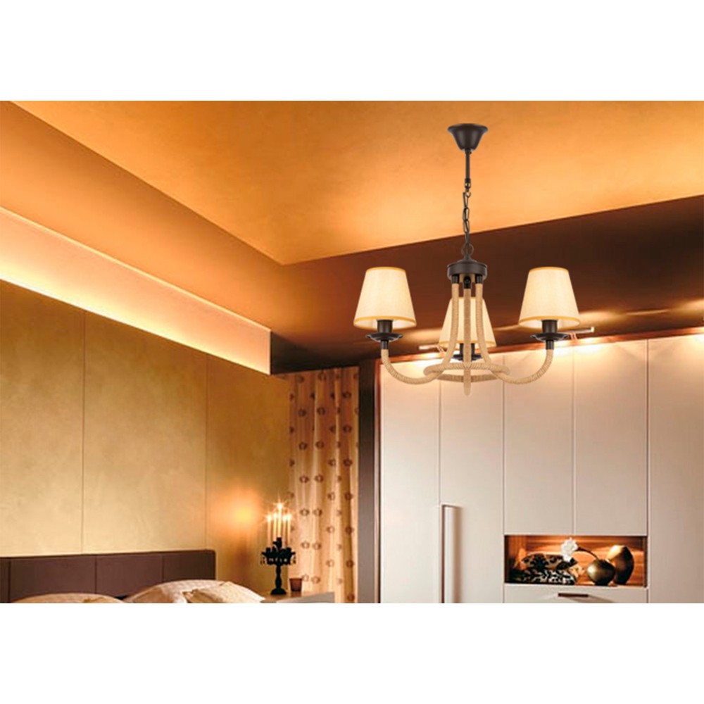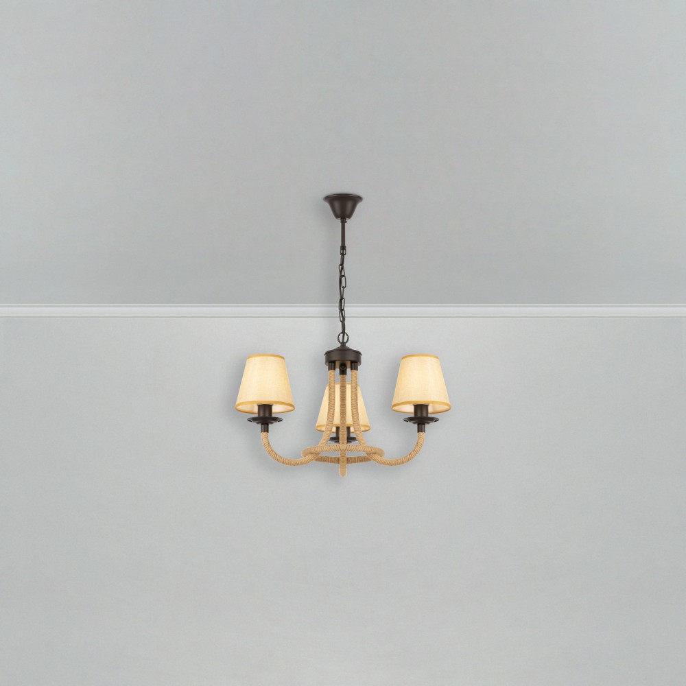 | Полное наименование | Серия светильников создана под влиянием основных принципов эко-дизайна, с использованием натуральных материалов для предметов интерьера. Арматура люстры из матового черного металла гармонично сочетается с абажурами из холщовой натуральной ткани. Рожки и центральная часть люстры плотно обвиты холщовой веревкой. Окантовка на верхней и нижней части абажура желто-песочного цвета. |