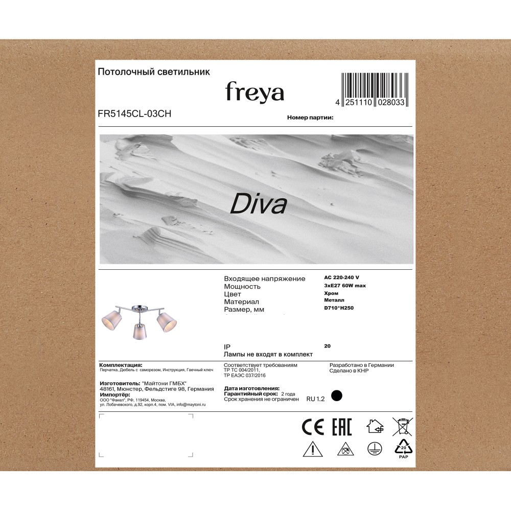 Технические характеристики Люстра Freya FR5145CL-03CH
