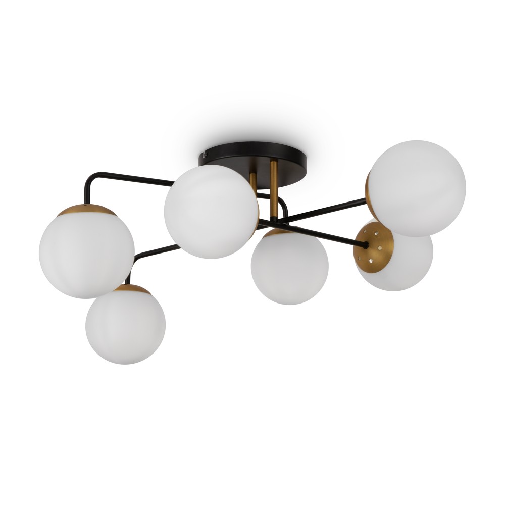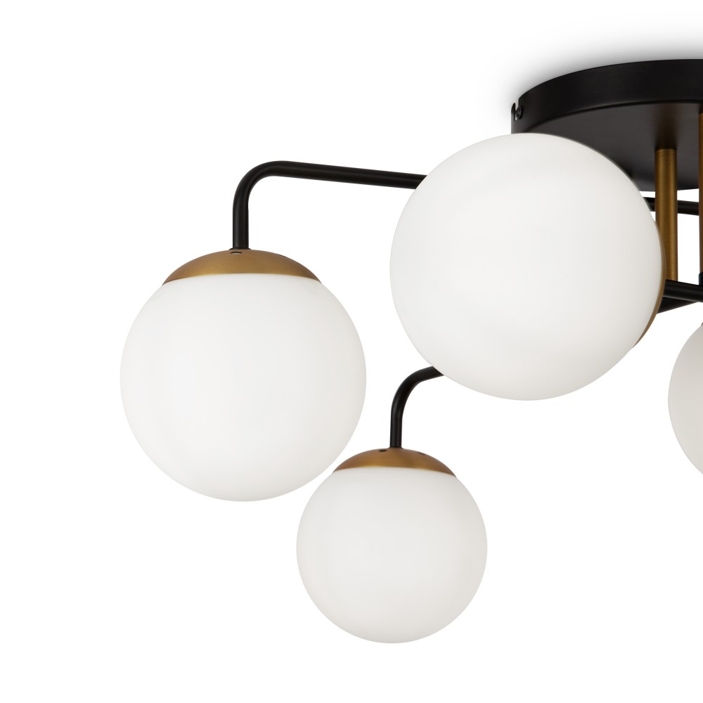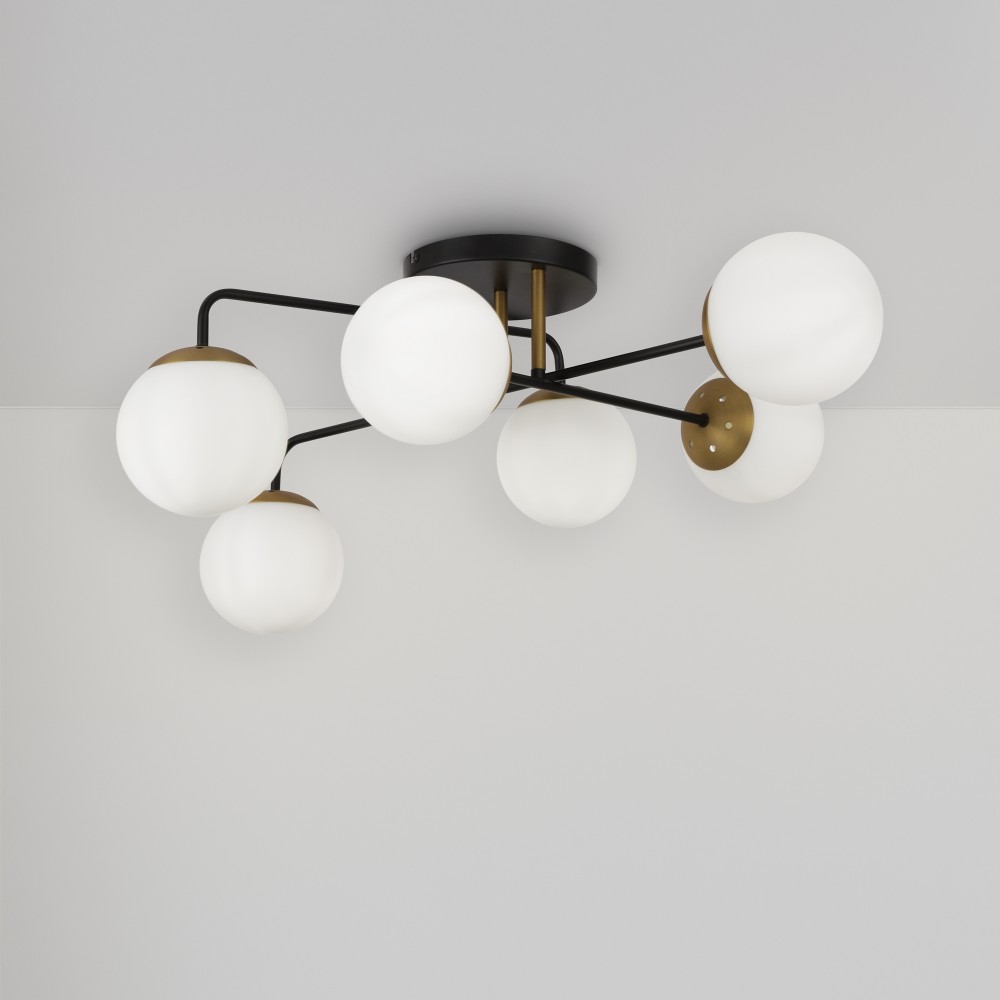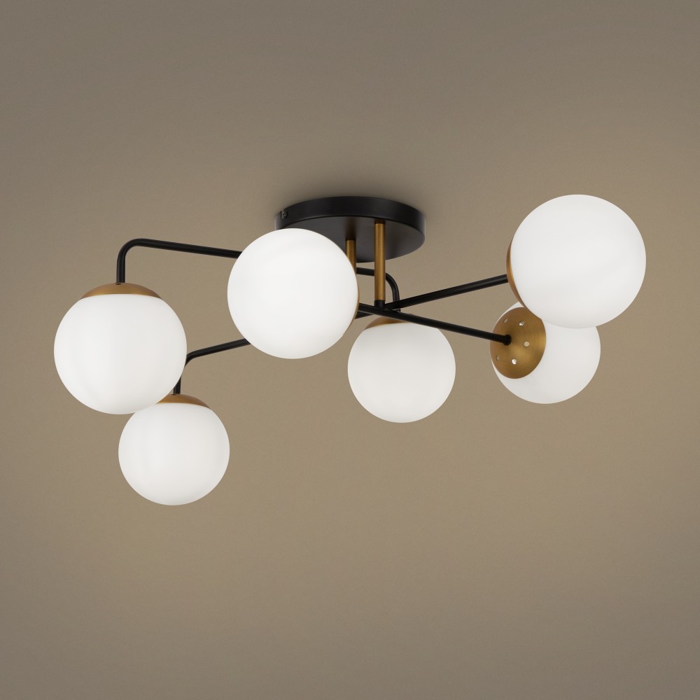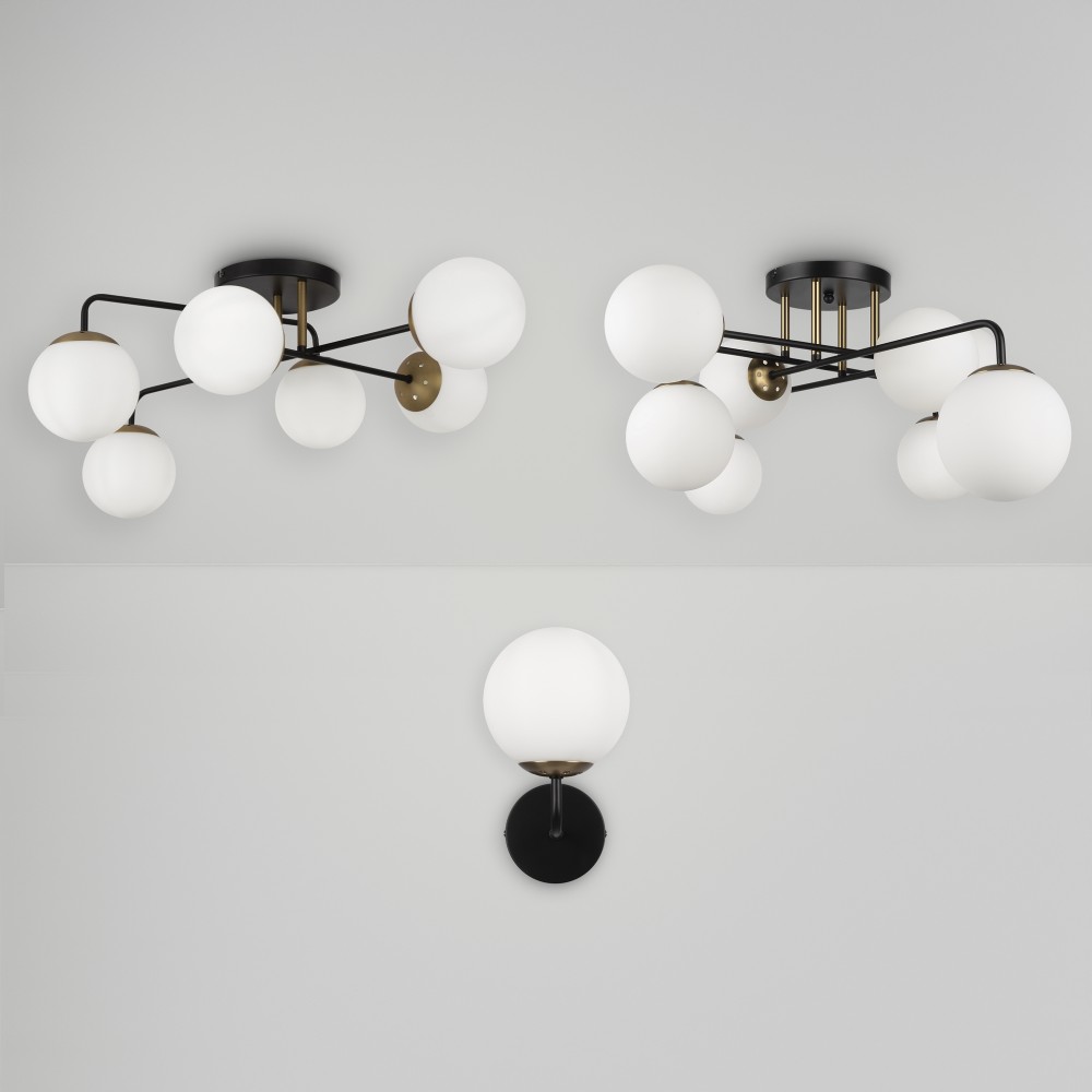 Минималистичный дизайн серии Navel добавит современным интерьерам динамичности. Графичные линии, отсутствие лишнего декора и прозрачные плафоны обеспечивают светильникам визуальную легкость: их можно использовать как в просторных студиях, так и в маленьких помещениях. Металлическая арматура сочетает черный цвет и благородный оттенок латуни – дуэт, актуальный для большинства цветовых решений интерьера. Округлые плафоны-сферы, выполненные из янтарного стекла, имеют трендовую фактурную поверхность. Такое решение создает легкую игру света и теней, добавляет дизайну изюминку. Компактные потолочные люстры на 6 и 8 плафонов подойдут для комнат с невысокими потолками, а стильное бра идеально завершит световой ансамбль. Серия хорошо адаптируется в интерьерах, выполненных в стиле лофт, сканди, минимализм, mid-century modern.