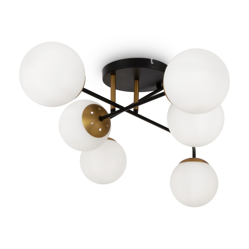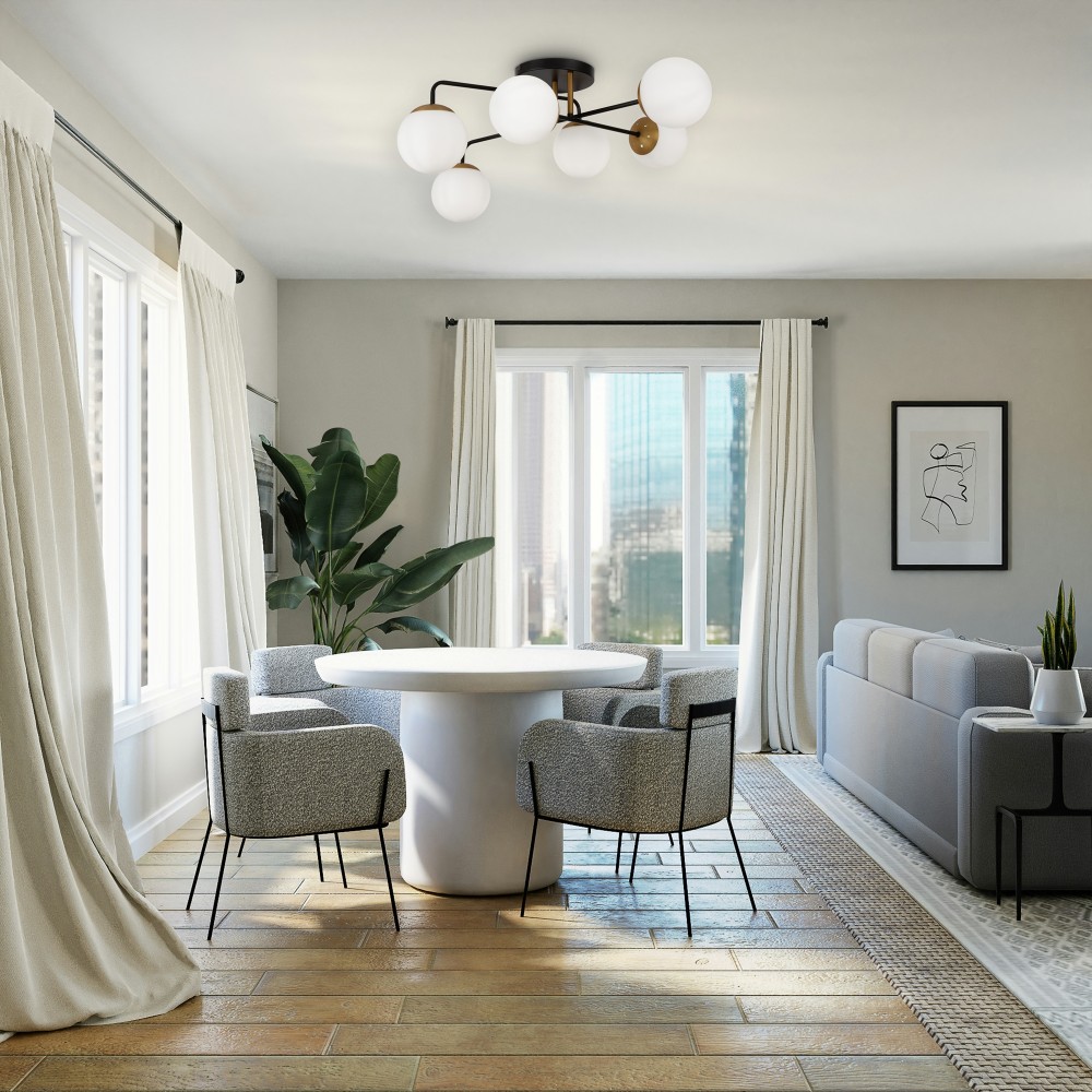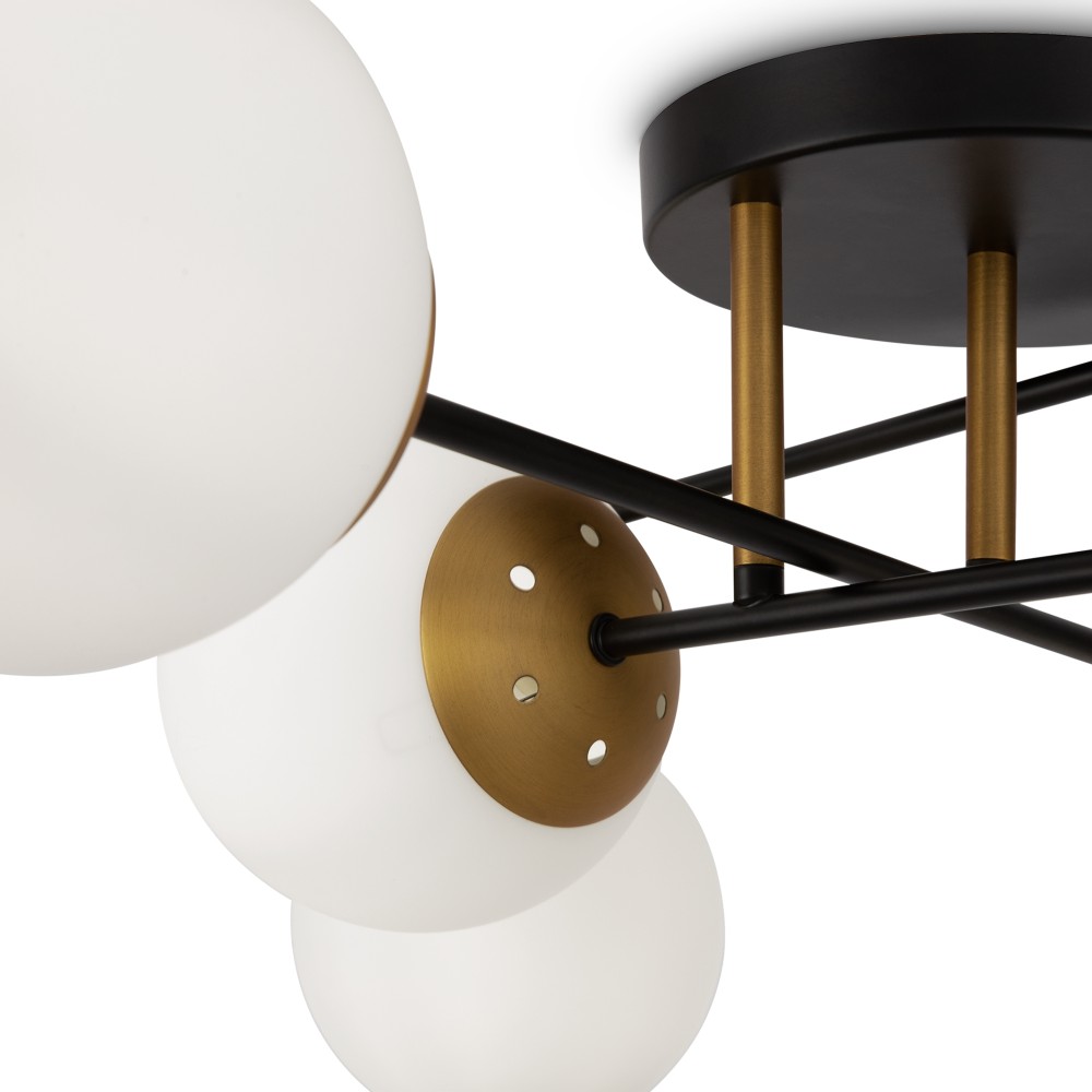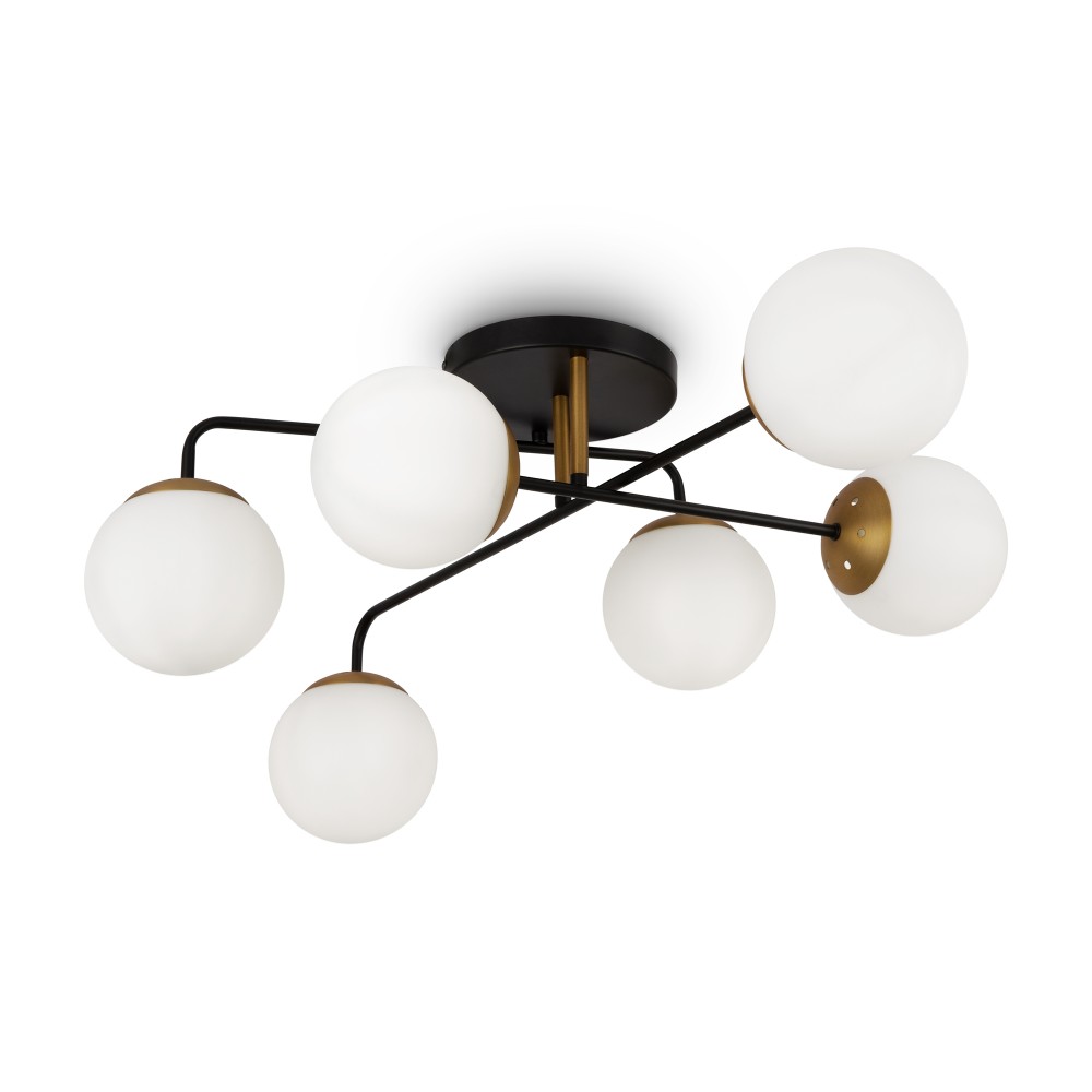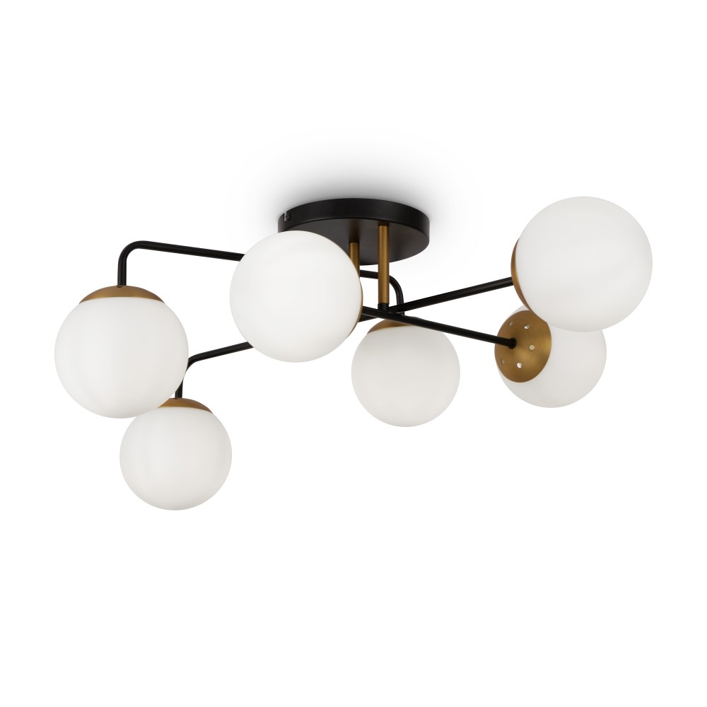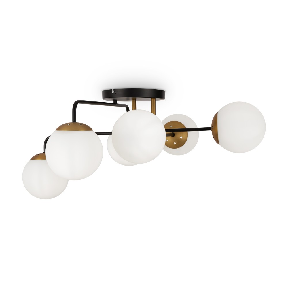 Минималистичный дизайн серии Navel добавит современным интерьерам динамичности. Графичные линии, отсутствие лишнего декора и прозрачные плафоны обеспечивают светильникам визуальную легкость: их можно использовать как в просторных студиях, так и в маленьких помещениях. Металлическая арматура сочетает черный цвет и благородный оттенок латуни – дуэт, актуальный для большинства цветовых решений интерьера. Округлые плафоны-сферы, выполненные из янтарного стекла, имеют трендовую фактурную поверхность. Такое решение создает легкую игру света и теней, добавляет дизайну изюминку. Компактные потолочные люстры на 6 и 8 плафонов подойдут для комнат с невысокими потолками, а стильное бра идеально завершит световой ансамбль. Серия хорошо адаптируется в интерьерах, выполненных в стиле лофт, сканди, минимализм, mid-century modern.