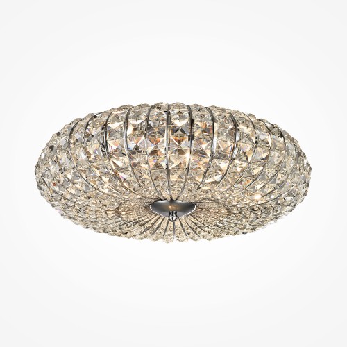 Материал арматуры – металл, цвет – никель. Металлический каркас абажура декорирован гранеными кристаллами. Компактная высота.