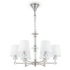Материал арматуры – нержавеющая сталь, цвет – хром. Материал абажуров – текстиль на ПВХ, цвет – белый. Декор – прозрачное стекло. Акцентные стеклянные кристаллы на рожках со сложной огранкой.