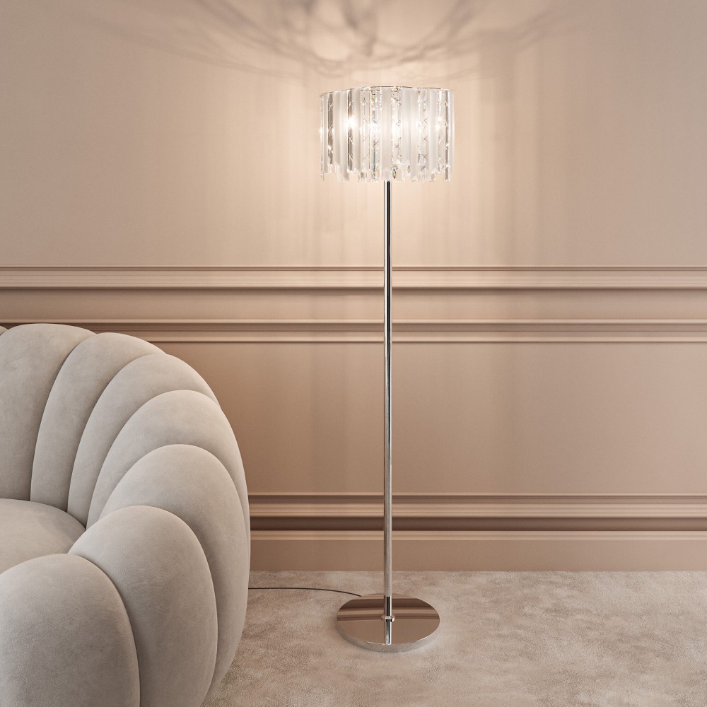 Напольный светильник с хрусталем 109011 хром - это стильный элемент светового дизайна в современных и классических интерьерах. Выразительный торшер со сменной лампой E14 поможет создать качественное дополнительное освещение на площади 8 м² и станет роскошным украшением вашей комнаты.