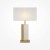 Металлическая арматура, цвет – латунь. Абажур – белый хлопок. Изюминка дизайна – элементы из натурального камня (алебастра). Трендовый микс фактур. Лаконичные формы в американском стиле. Источник света - лампа с цоколем Е14.