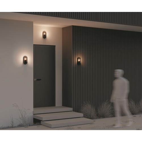Материал корпуса - алюминий, цвет - графит. С декоративной металлической решеткой и без. Идеальны для освещения входных зон. Стиль лофт. Источник света - лампа с цоколем - Е27. Высокая степень защиты - IP65.