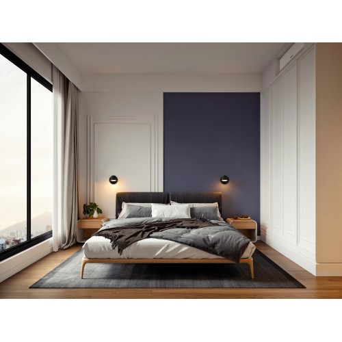 Арматура из металла. Цвета — белый, черный, латунь, черный и латунь. Поворотные плафоны. Кнопка переключения на светильнике. LED-источник света с цветовой температурой 3000К.