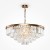 Арматура из металла в трех оттенках: латунь, хром, золото. Многоярусный декор. Подвески: прозрачное (арматура – хром, латунь) и янтарное (арматура – золото) стекло. Высота подвесных моделей регулируется.