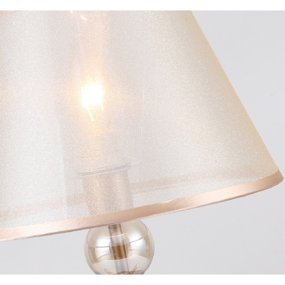 | Материал и цвет плафонаполупрозрачная органза с золотой окантовкой | Цвет хрусталя- | ЦокольE14 |