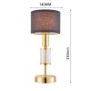 | Тип светильниканастольный светильник | Материалметалл, стекло, ткань | Материал и цвет декорапрозрачное стекло |