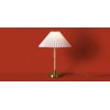 Материал арматуры — металл и дерево, цвет металла— латунь. Настольный, подвесной светильник и торшер с цоколем E27. Белый тканевый абажур гофрированный рельеф. Переключатель на настольной лампе и торшере на цепочке. Подходят для классических и современных интерьеров.
