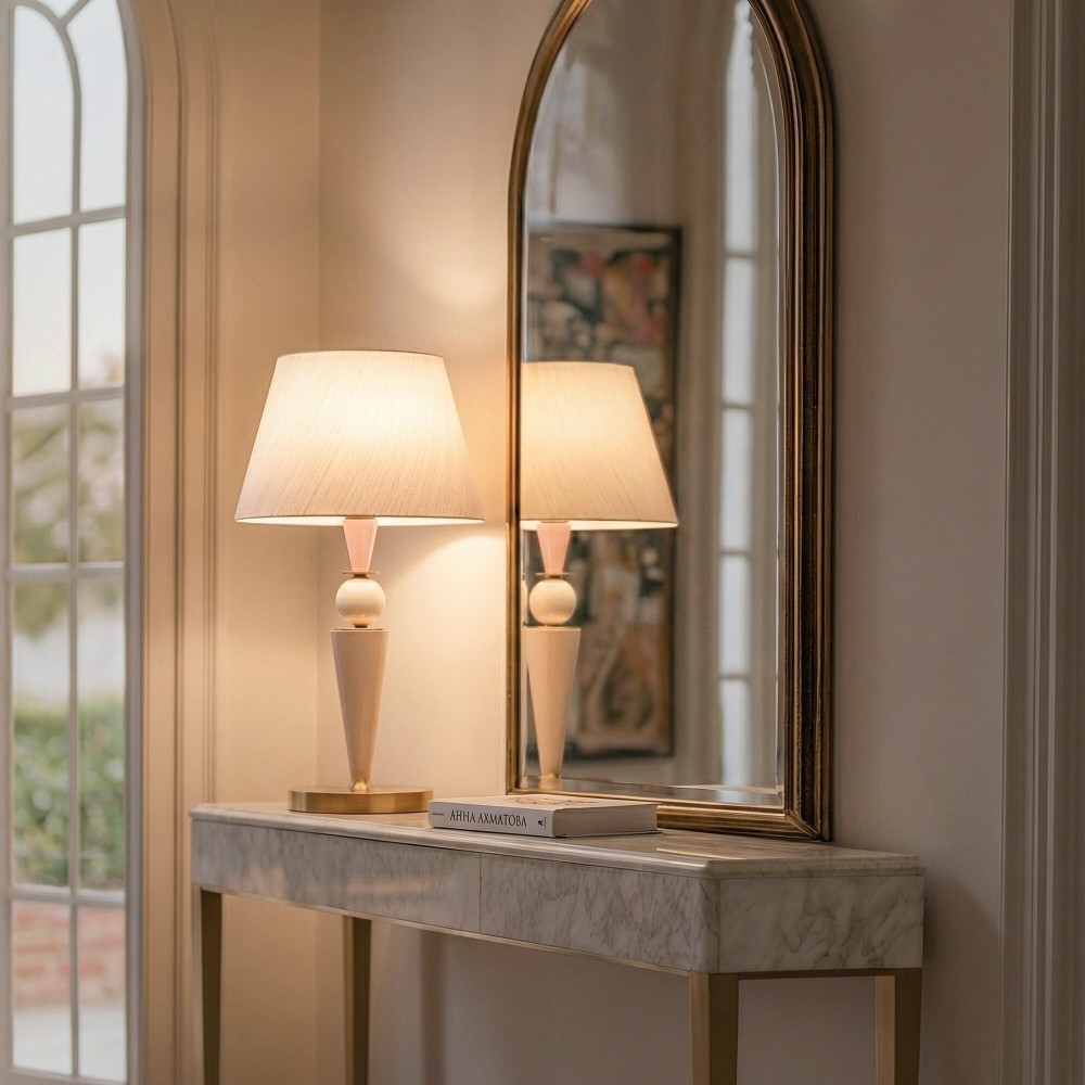 Прикоснитесь к текстуре ткани, оцените безупречную гладкость керамики — эта настольная лампа создана для тех, кто ценит тактильные ощущения и эстетику.