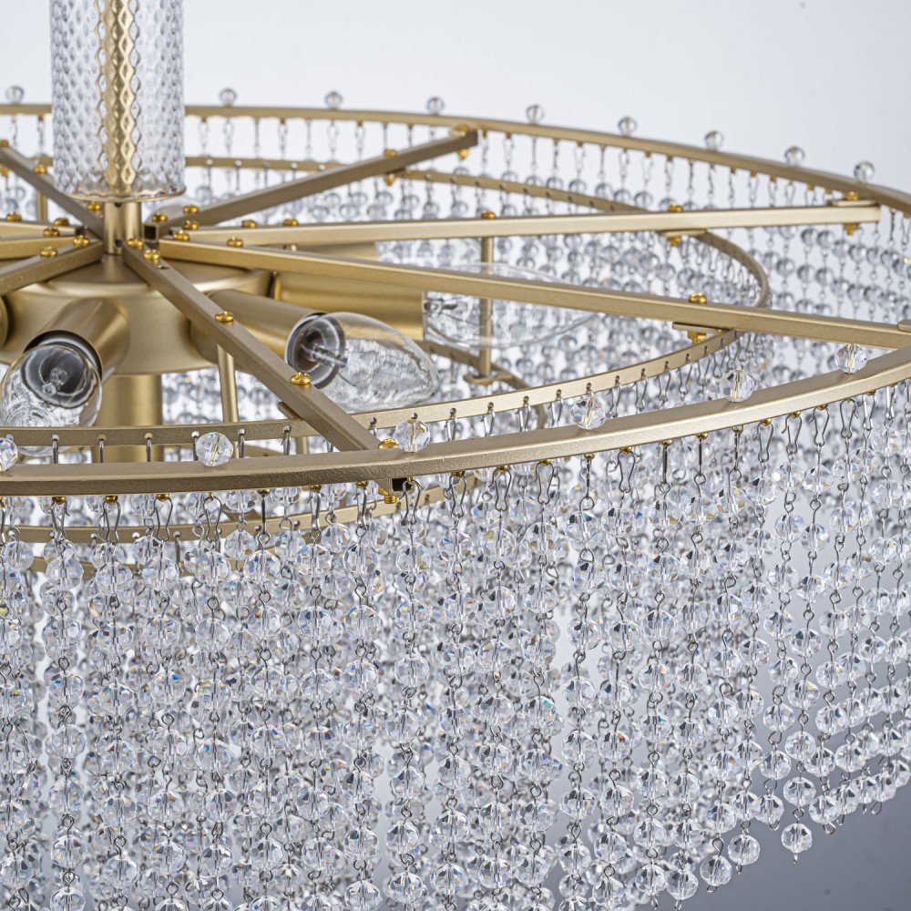 | Тип светильникаподвесная люстра | Материалметалл, хрусталь | Материал и цвет декораметалл |