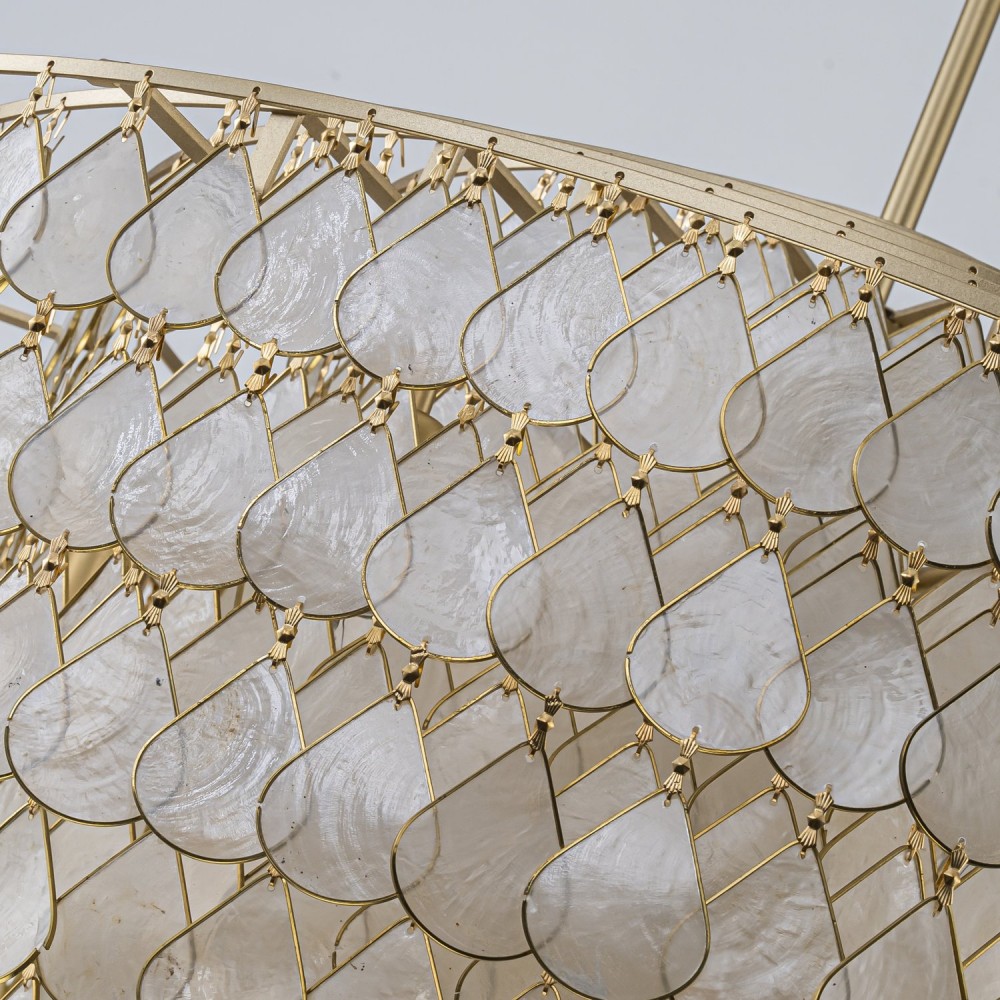 | Тип светильникаподвесная люстра | Материалметалл, ракушки | Материал и цвет декораметалл |