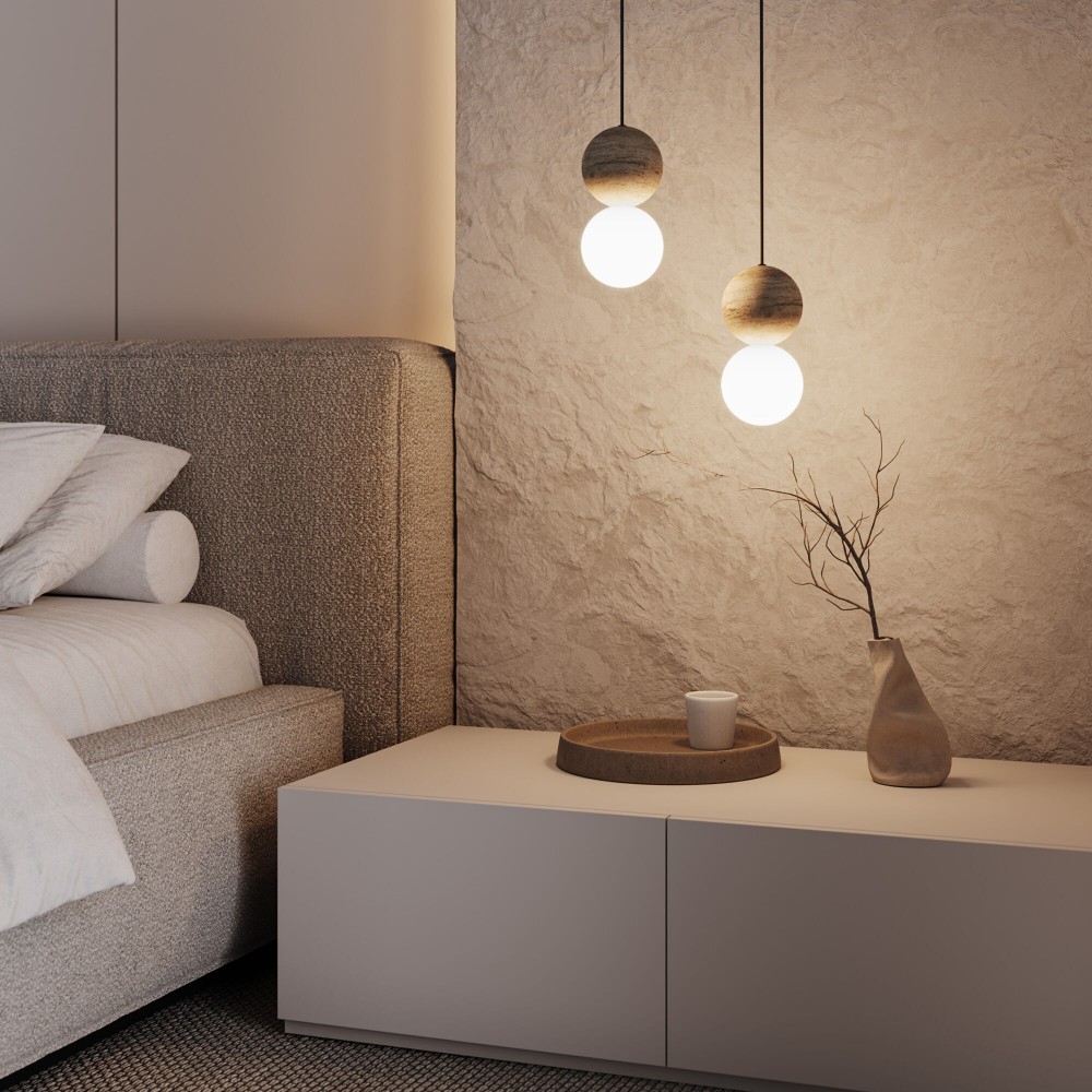 Подвесной светильник из коллекции Stone станет ярким акцентом в современном интерьере гостиной, спальни или кухни.
