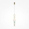 Металлическая арматура цвета латуни. Плафоны из белого стекла для мягкого, равномерного освещения, декоративные элементы из цветной керамики. Угол рассеивания 120°. Цветовая температура – 3000 К. Регулируемый провод длиной 3 м.