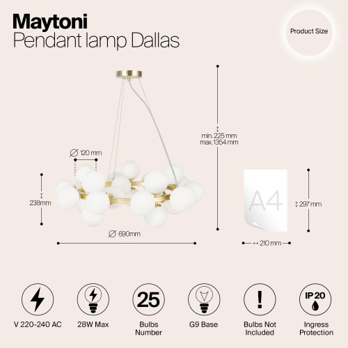 Технические характеристики Подвесной светильник Maytoni Dallas MOD545PL-25BS