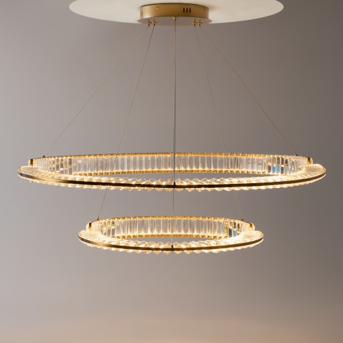 Металлическая арматура, цвет - латунь. Асимметричный хрустальный декор. LED-источник света. Цветовая температура - 3000К. Высокий индекс цветопередачи 90Ra