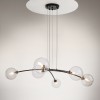Материал арматуры - металл. Цвет - латунь, черный. Изящные линии арматуры, прозрачные плафоны из стекла в виде шара с миниатюрными лампами создают эффект воздушности светильников. Регулируемая высота подвесных светильников. Цоколь G4.