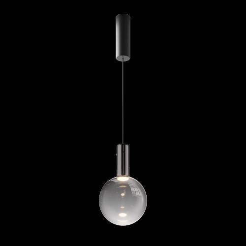 Металлическая арматура, цвет - черный, белый. Выдувной плафон-шар из стекла с вытянутым цилиндрическим основанием в трех цветах: дымчато-черный, туманно-белый, бежево-коньячный. LED-источник света в основании плафона. Цветовая температура 3000К. Два диаметра плафонов и регулируемая длина проводов для создания разнообразных композиций.