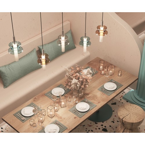 Уникальная многослойная конструкция в образе звуковой волны. Магнитная потололчная чаша из металла без видимых креплений. Плафон-трубка из белого полупрозрачного стекла. Декоративный волнообразный «звуковой» элемент из литого стекла в центре плафона. Цвета - синий, черный, золото, серый. Источник света - лампа с цоколем G9.