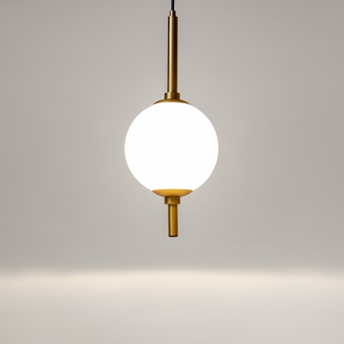 Металлическая арматура в черном цвете. Плафоны-сферы из белого стекла. LED-источник света с цветовой температурой 3000К. Удобные выключатели вверхней части арматуры. Функция раздельного включения световых элементов