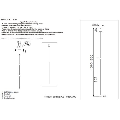 Технические характеристики Светильник подвесной Crystal Lux CLT 035C700 WH