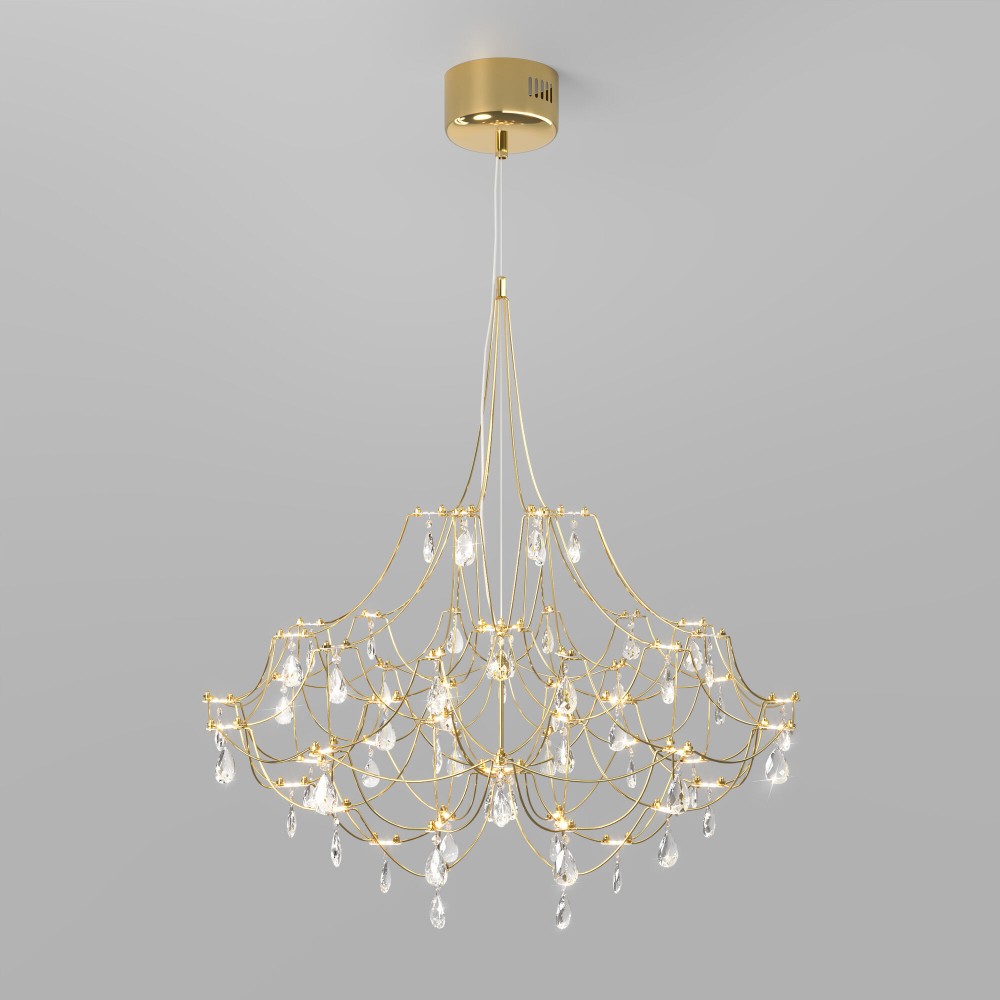 Минималистичная люстра Adit с хрустальными элементами и ажурным проволочным каркасом впишется в любой интерьер — от классики до лофта. Эта люстра — не просто источник света, а арт‑объект, который преобразит ваш интерьер.